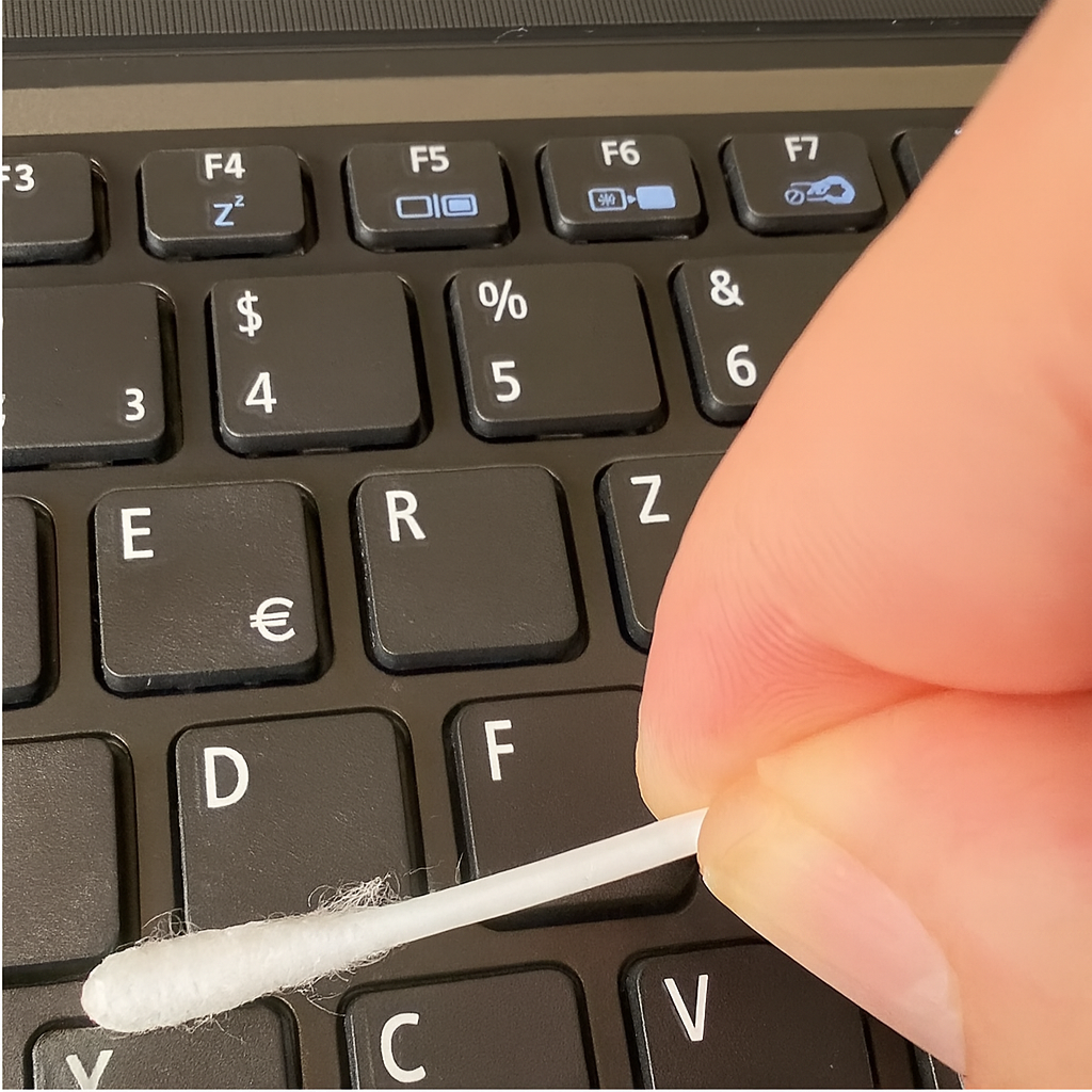 Dein Handy oder Laptop sieht schnell schmutzig aus – besonders in den kleinen Öffnungen. Mit einem Wattestäbchen, das leicht mit Alkohol oder Desinfektionsmittel befeuchtet ist, kannst du Lautsprecher, Anschlüsse und Kameraränder gründlich säubern.