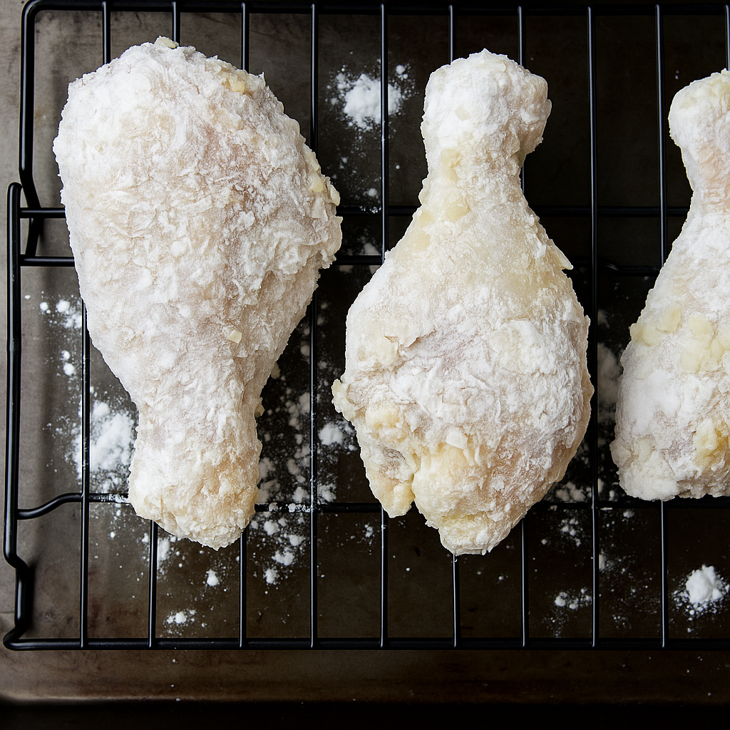 Wasche die Hähnchenteile gründlich und tupfe sie trocken. Lege sie anschließend in eine Schüssel mit Buttermilch und lasse sie für mindestens 2 Stunden (am besten über Nacht) im Kühlschrank marinieren. So bleibt das Fleisch besonders zart und saftig. 🥛