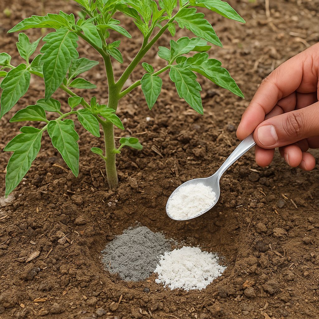 🔸 1 Esslöffel Holzasche + 1 Esslöffel Knochenmehl in das Pflanzloch geben, leicht mit Erde bedecken und erst dann die Pflanze einsetzen.