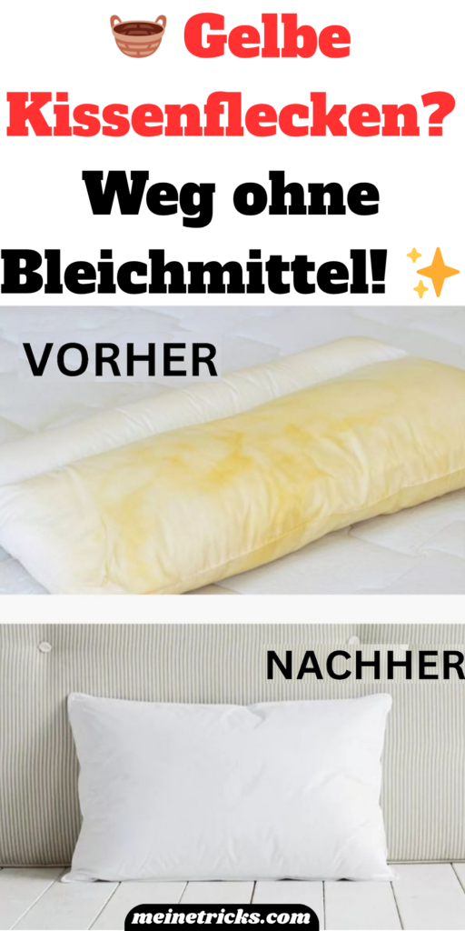 🎥 Sieh dir dieses kurze Video an – hier wird gezeigt, wie du gelbe Kissenflecken entfernst, ohne Waschmaschine oder Bleichmittel!