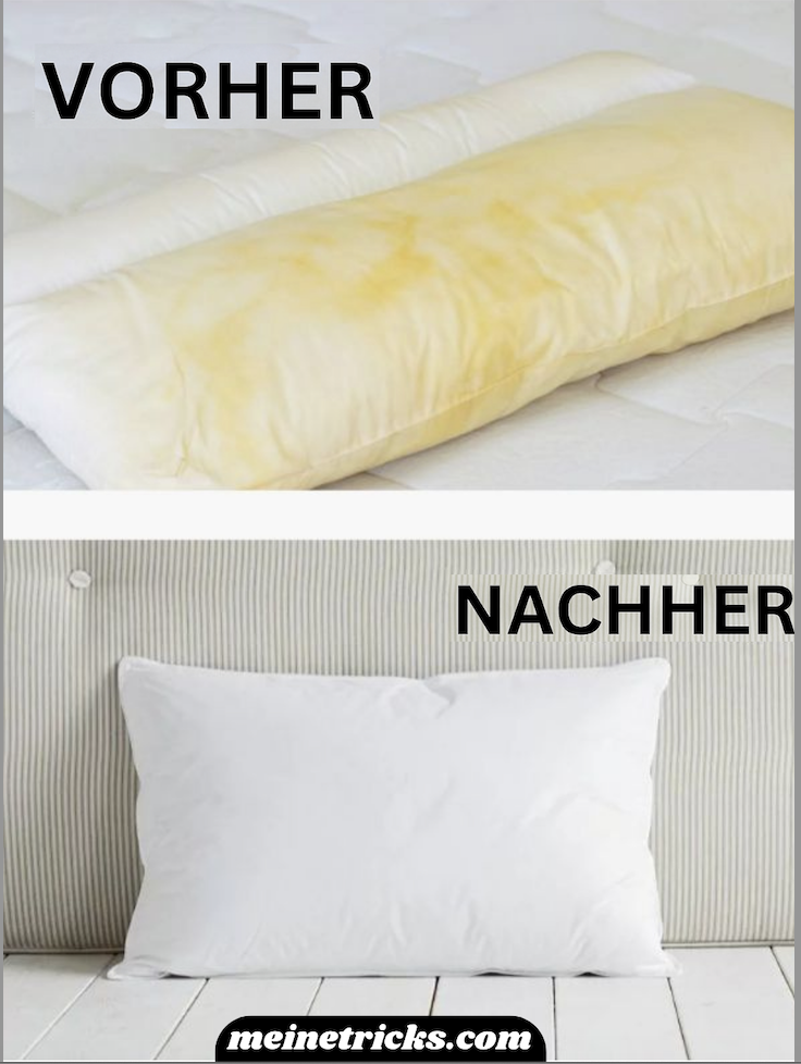 💡 Ergebnis: Das Kissen wird wieder schneeweiß, hygienisch sauber und duftet frisch – ganz ohne Chemie oder Bleiche!